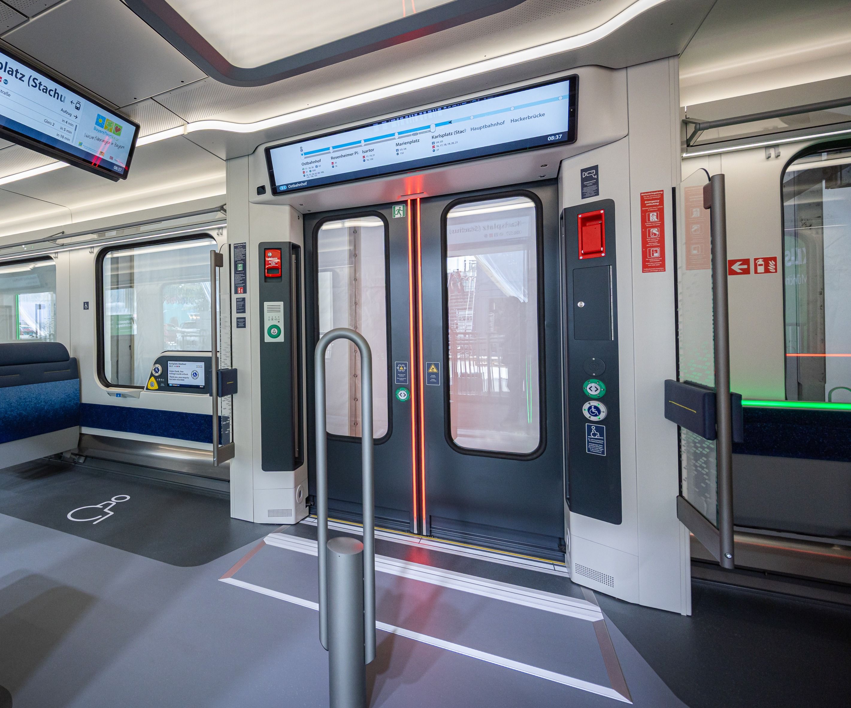 Our automated production processes ensure precision, ergonomic design, and aesthetic appeal. All indoor systems comply with EN 45545 – Fire Protection on Railway Vehicles.
